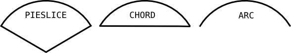 The arc comes in three styles choices: "pieslice", "chord", and "arc"